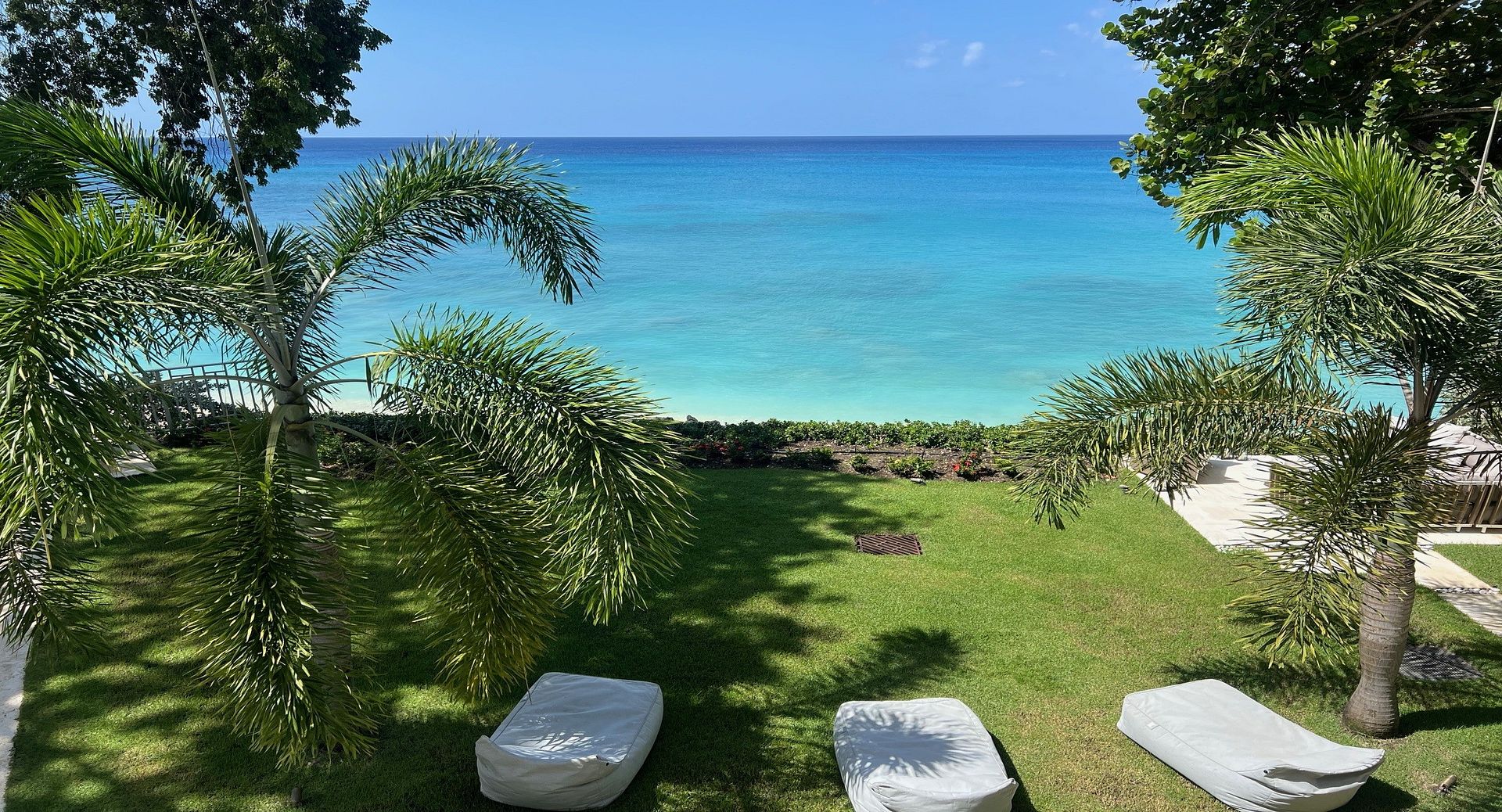 The outdoor space is a true paradise, boasting a large lap pool with sun loungers, a pool table, dedicated pool washrooms, and a BBQ grill for the ultimate in al fresco entertaining. A private pathway leads directly onto the powder-soft sands of Gibbs Beach, complete with a coded gate and an outdoor shower for convenience. Across the lush garden, a fire pit with seating offers the perfect setting for evening cocktails as you watch the catamarans drift by. The villa also boasts a fully equipped gym for invigorating workouts, along with a dedicated space and massage table for in-villa spa treatments.