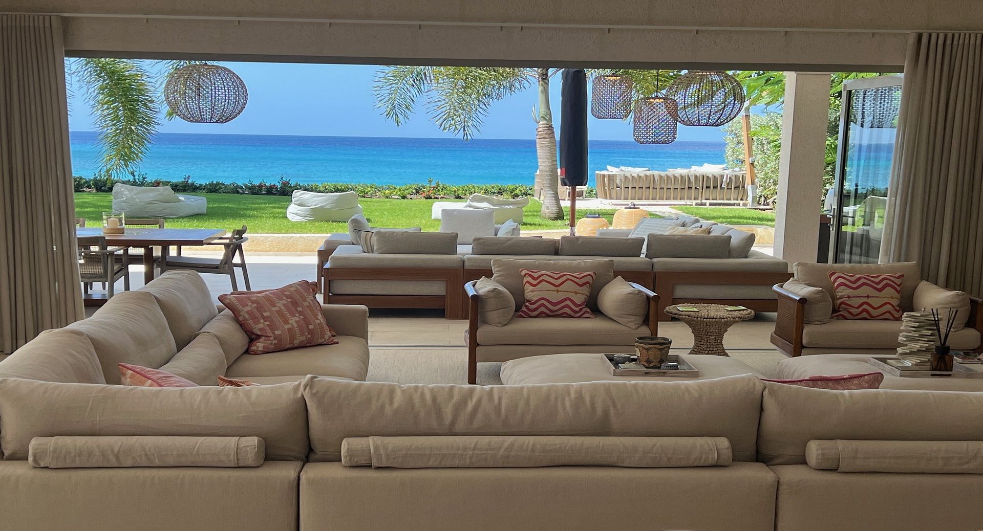 From the moment you arrive, Calabash captivates with its tranquil koi pond and soothing water walls, setting the tone for the serenity that awaits within. The ground level features a beautifully designed open-plan layout, where a modern kitchen, media room, and stylish living area flow effortlessly into the expansive pool deck. Bi-fold doors blur the lines between indoor and outdoor living, allowing guests to bask in the island’s warm breezes and stunning scenery or enjoy the cool of the central air-conditioning.