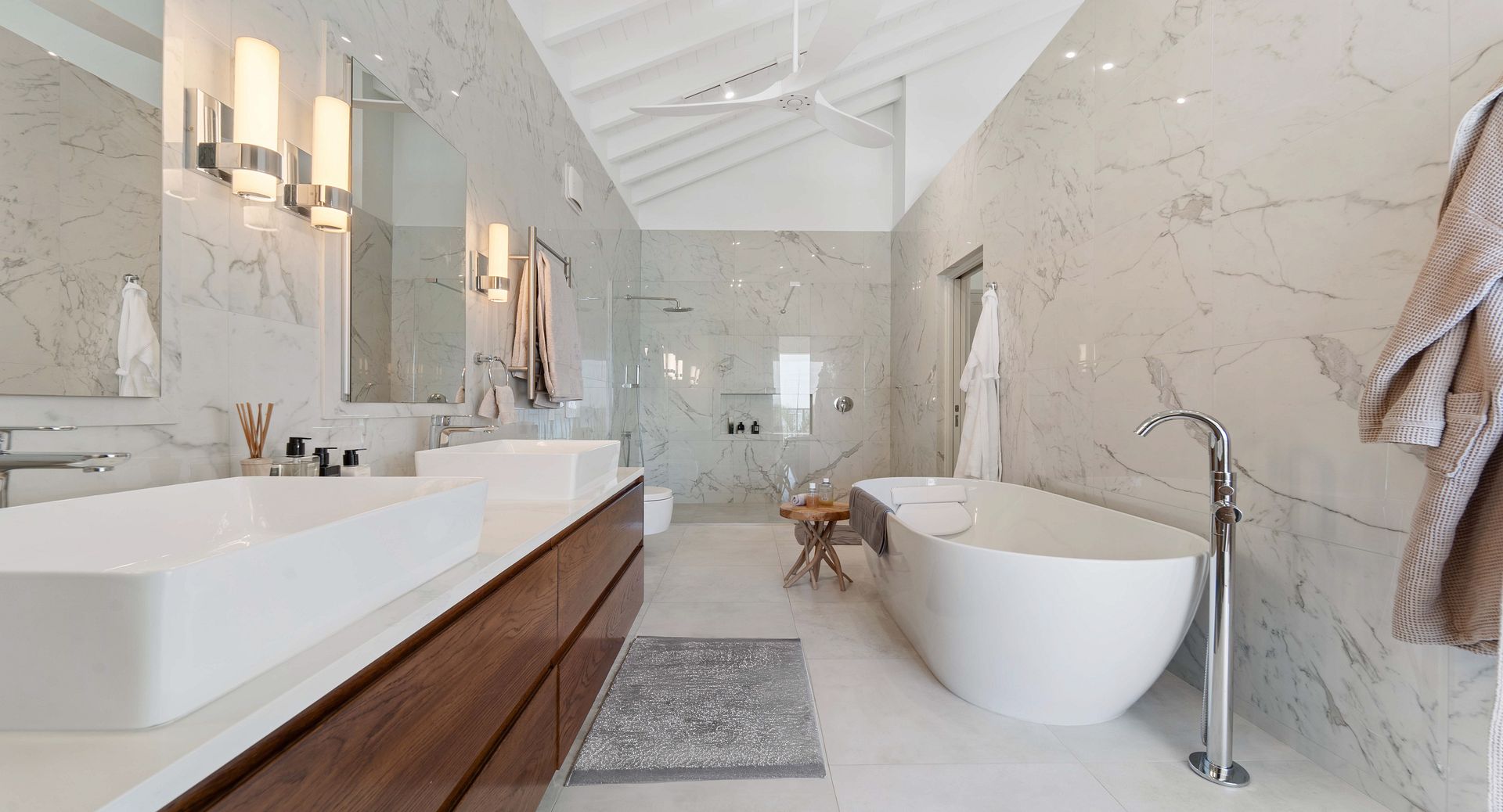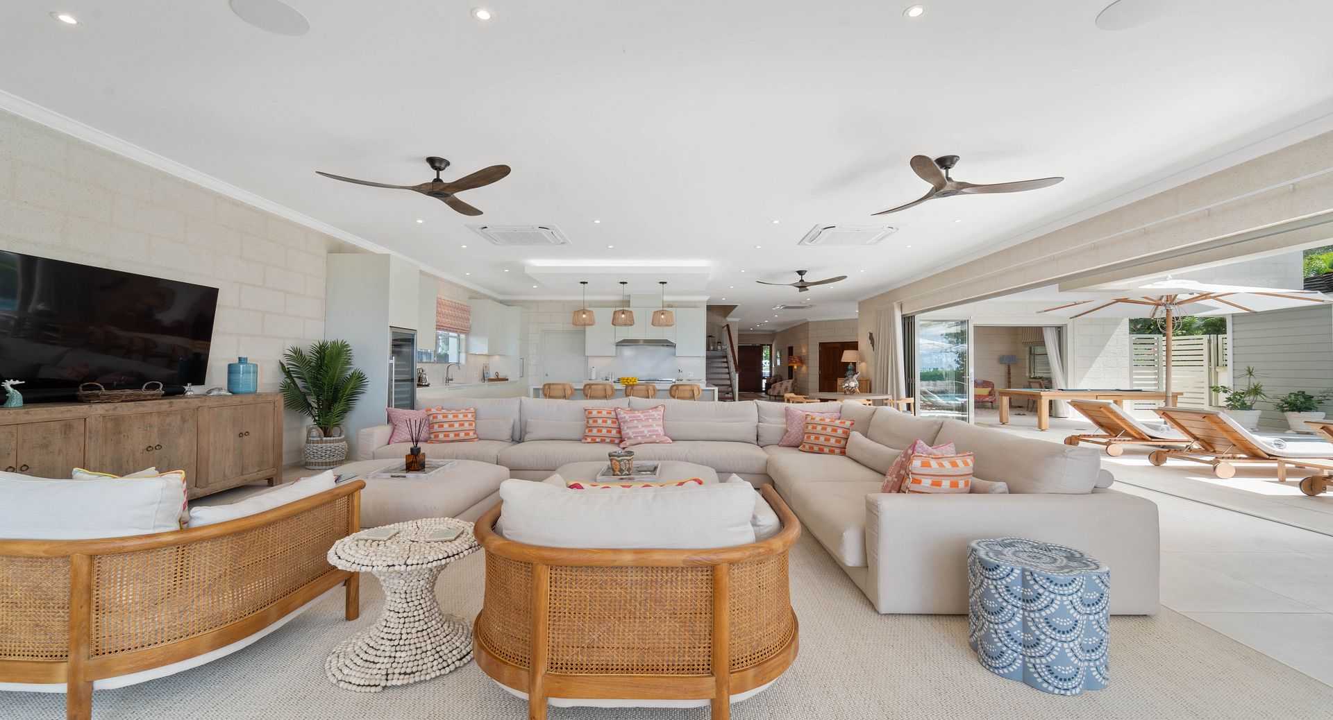 From the moment you arrive, Calabash captivates with its tranquil koi pond and soothing water walls, setting the tone for the serenity that awaits within. The ground level features a beautifully designed open-plan layout, where a modern kitchen, media room, and stylish living area flow effortlessly into the expansive pool deck. Bi-fold doors blur the lines between indoor and outdoor living, allowing guests to bask in the island’s warm breezes and stunning scenery or enjoy the cool of the central air-conditioning.
