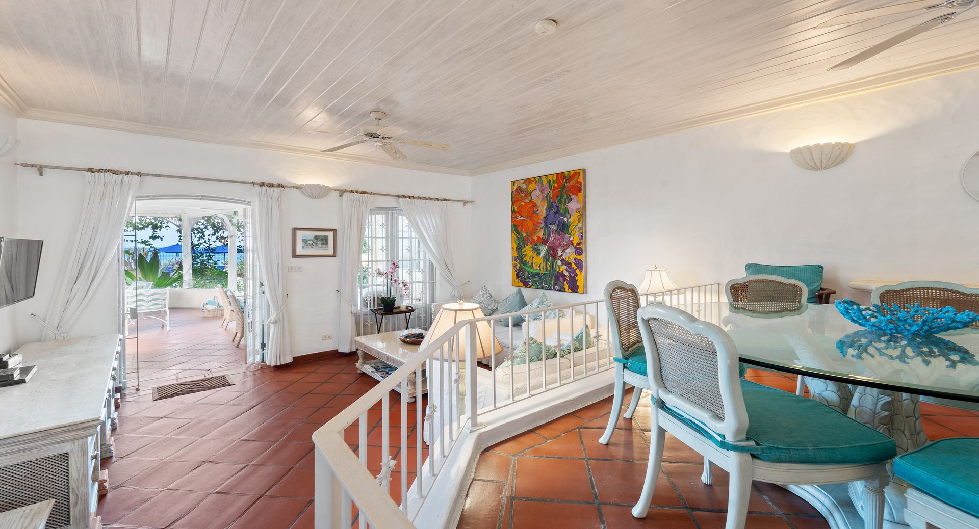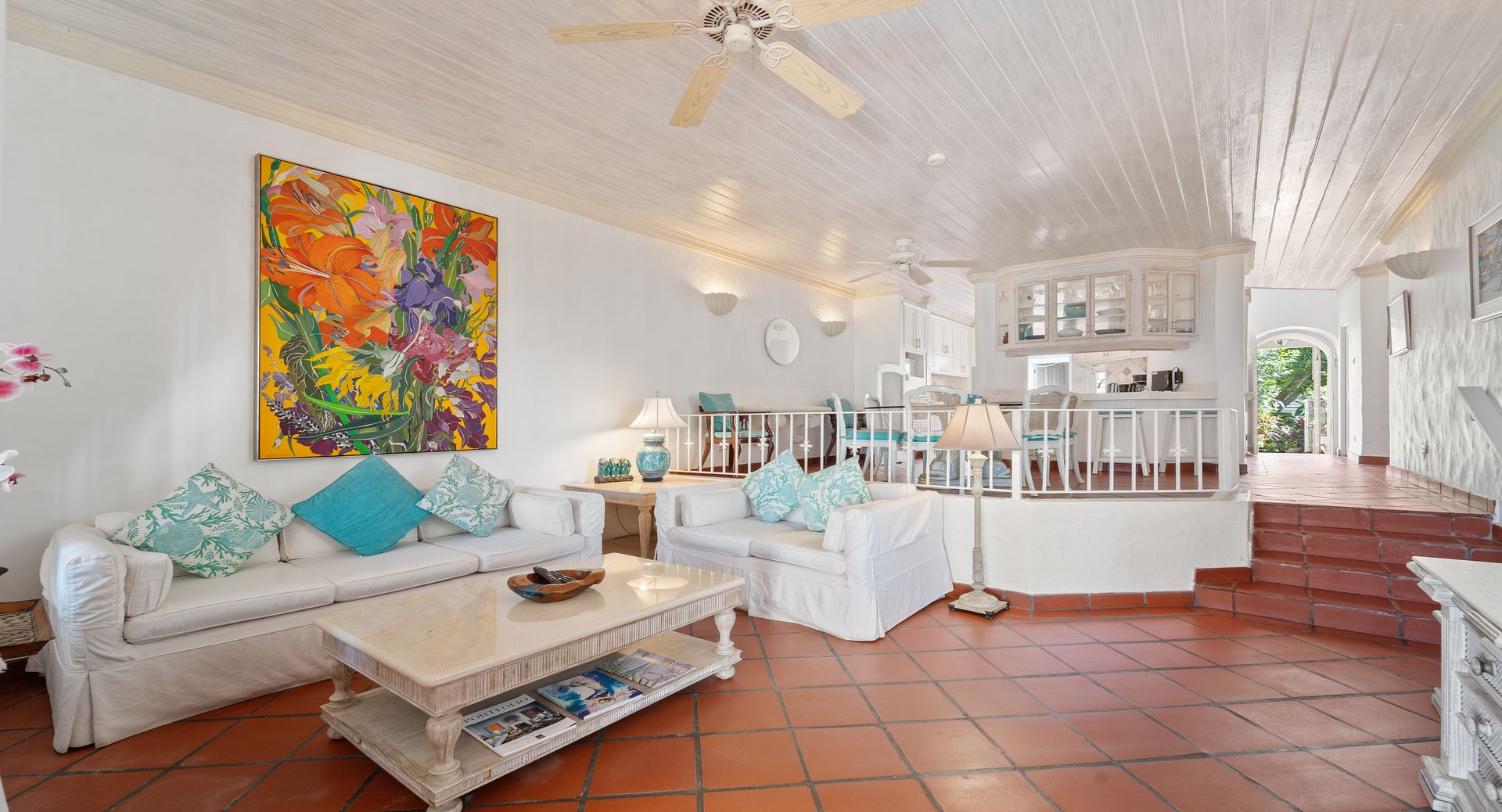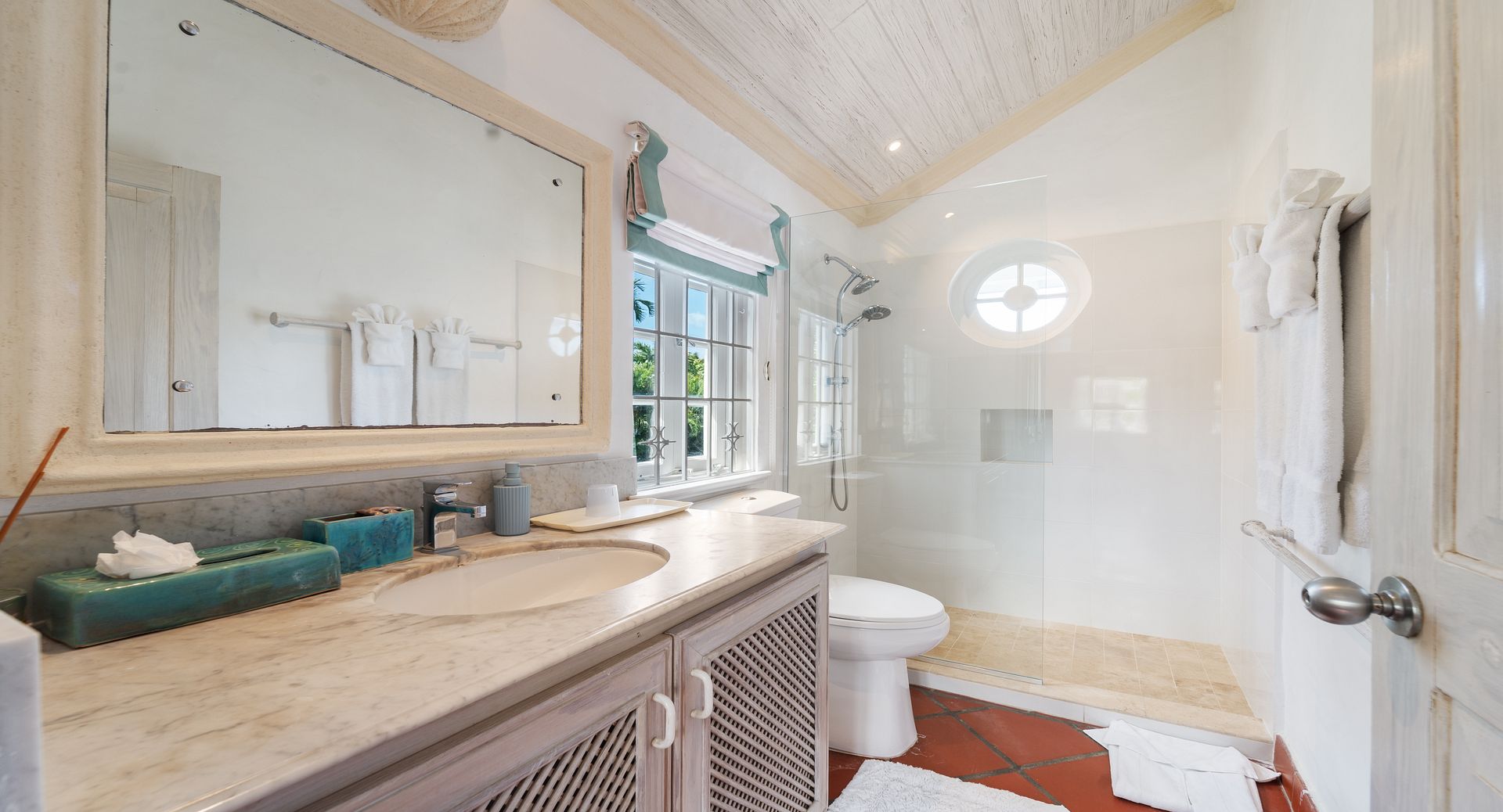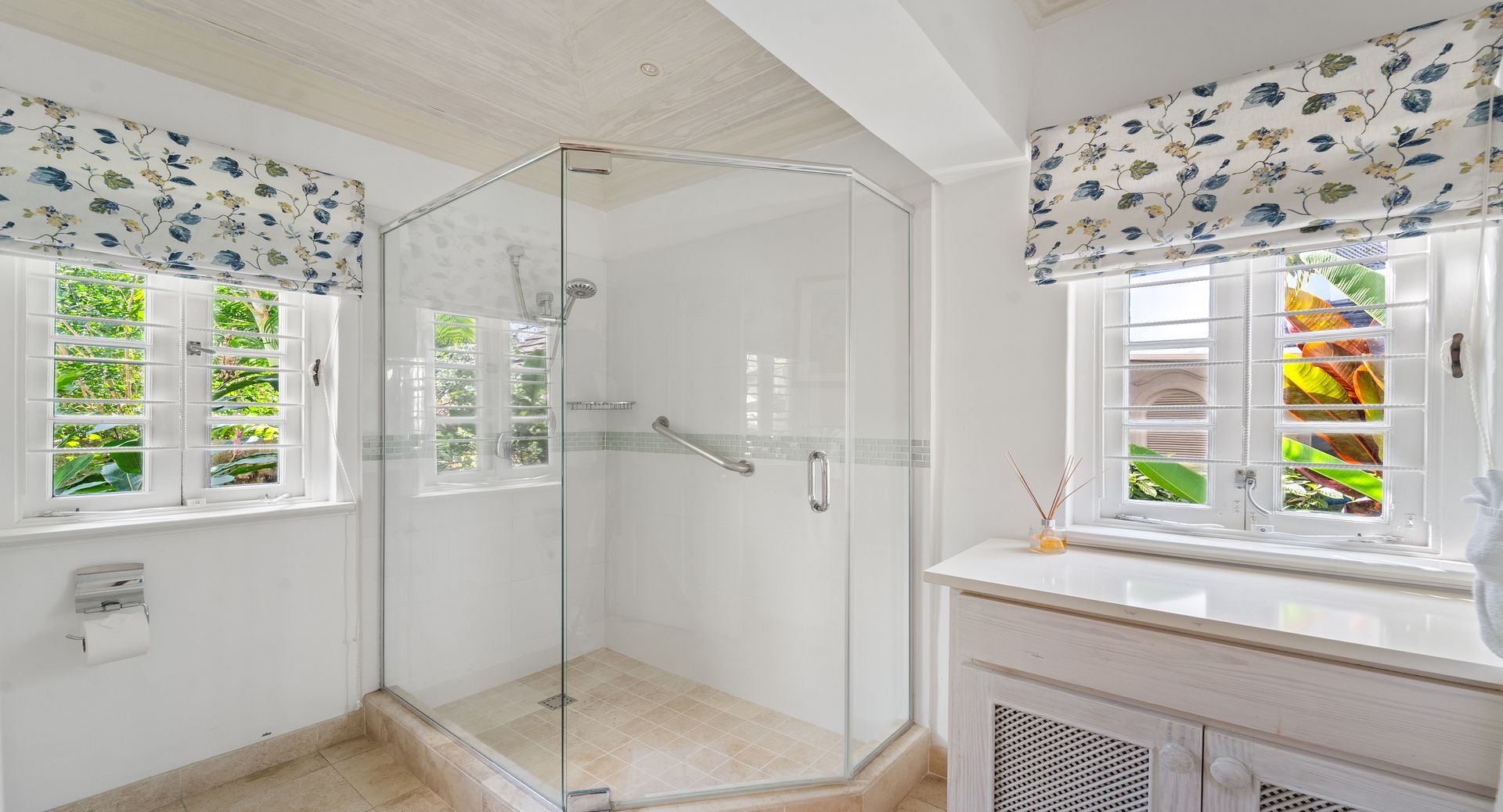 Each villa has three generously large air-conditioned bedrooms, two on the upper level and one on the ground floor, all with private patios enjoying spectacular views of the Caribbean Sea. All bedrooms feature en-suite bathrooms. Ceiling fans are throughout.