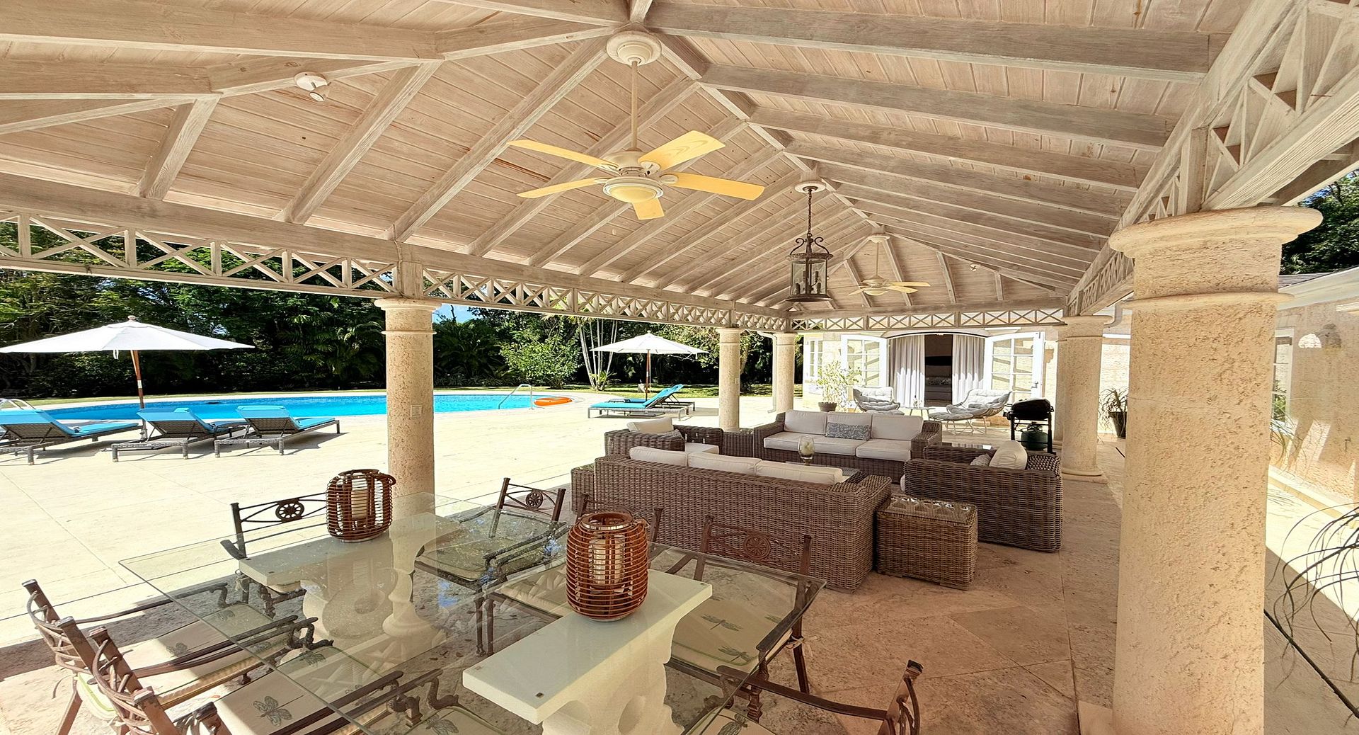 Inside, Franklins House welcomes you with a warm, elegantly appointed atmosphere. Fully air-conditioned throughout, the villa offers multiple inviting living and entertaining spaces designed for unwinding with family and friends. Each of the three spacious ensuite bedrooms provides a peaceful retreat, ensuring restful nights after sun-filled days.