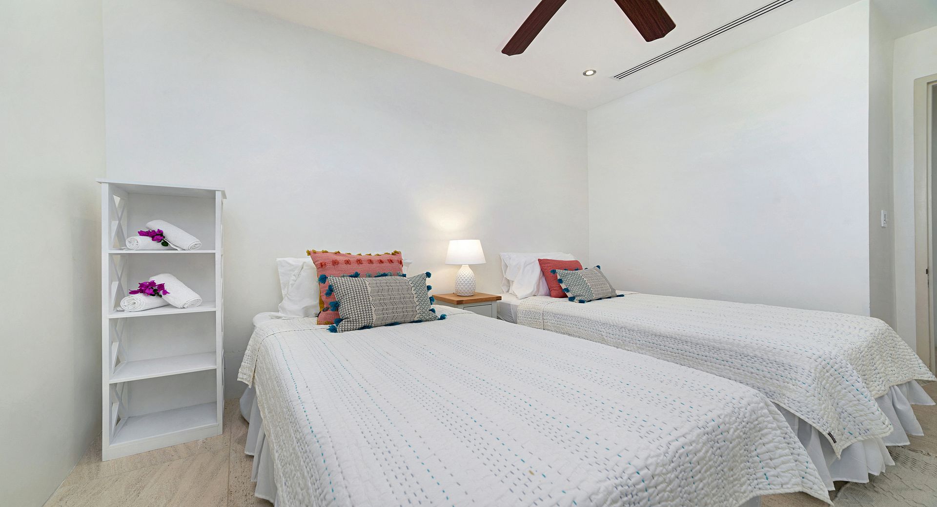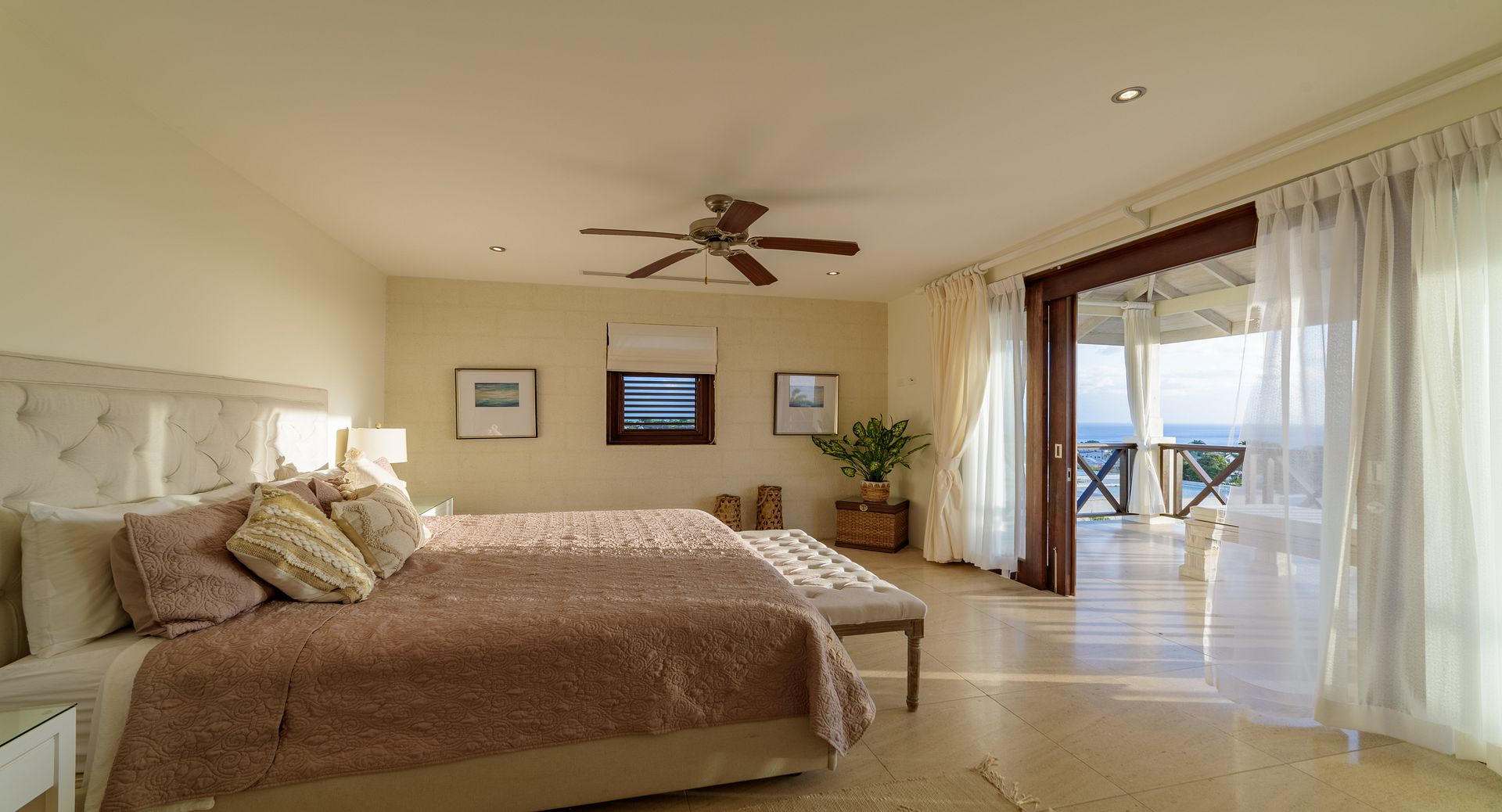 This villa offers a range of elegant ensuite bedrooms across its different levels, each equipped with modern amenities for a comfortable stay. The upper-level South Wing offers a main bedroom with a king bed and private en-suite, as well as a flexible second bedroom with its own en-suite. In the North Wing, the primary bedroom features a king bed and lavish ensuite bathroom, while the second bedroom offers bedding flexibility and an ensuite.