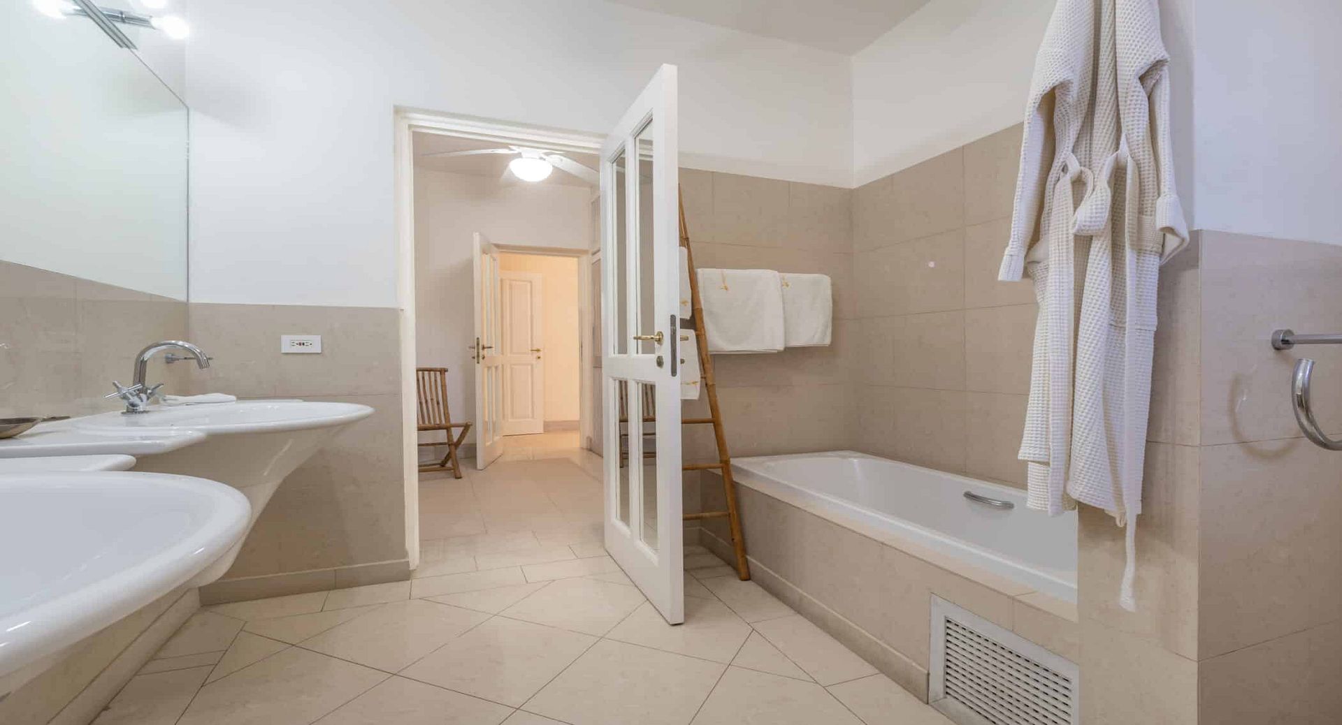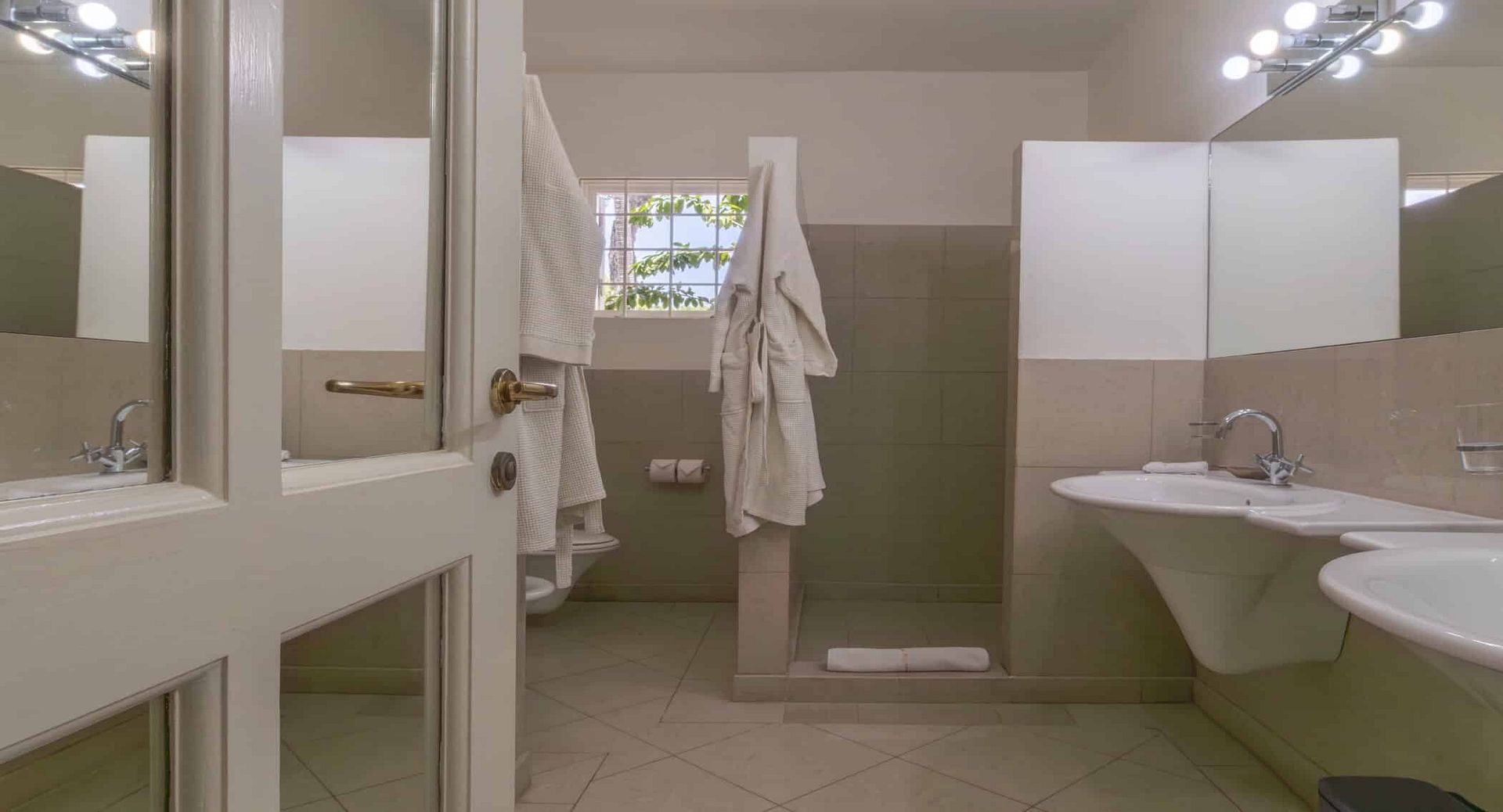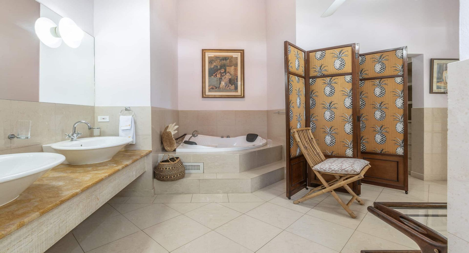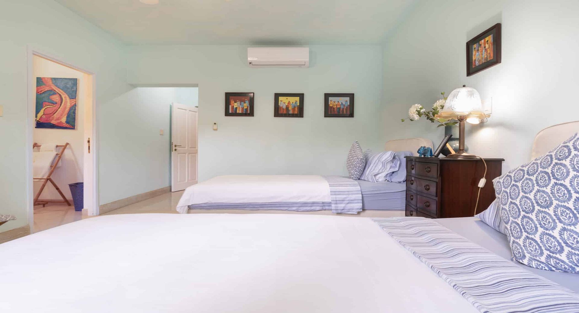 The seven spacious bedrooms, each with its own en-suite bathroom, are thoughtfully arranged across the main villa and a separate two-bedroom guest cottage, offering privacy and flexibility for larger groups or multi-generational families. Two impressive master suites feature private terraces, while other bedrooms open directly onto the pool terrace, patio, or tranquil garden spaces. Bedrooms are beautifully configured with king, queen, and convertible twin beds to suit a variety of guest arrangements.