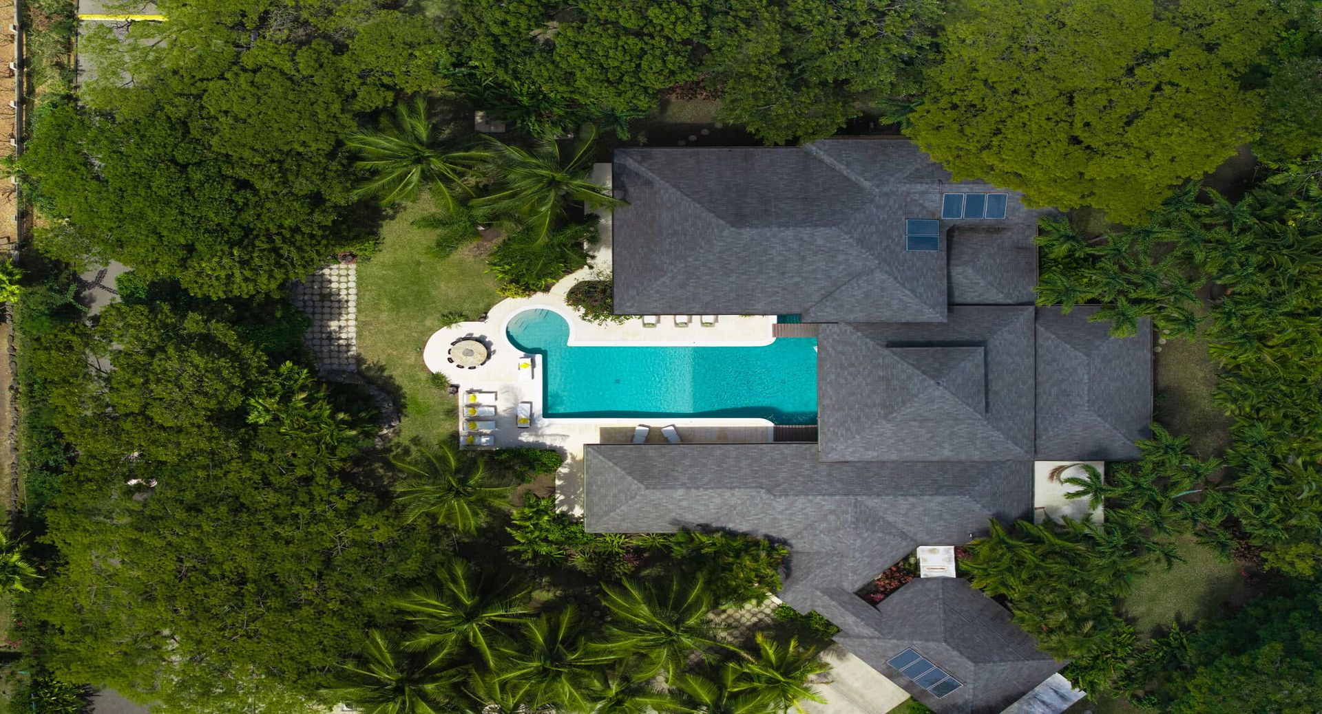 Designed for both relaxation and entertaining, the villa offers an abundance of beautifully appointed living spaces. Covered terraces provide elegant areas for al fresco dining and lounging, while indoor and outdoor living rooms create seamless spaces to gather, unwind, and enjoy the tropical surroundings. A dedicated entertainment and media room, games area with foosball, and even a charming piano room add to the villa’s distinctive character.