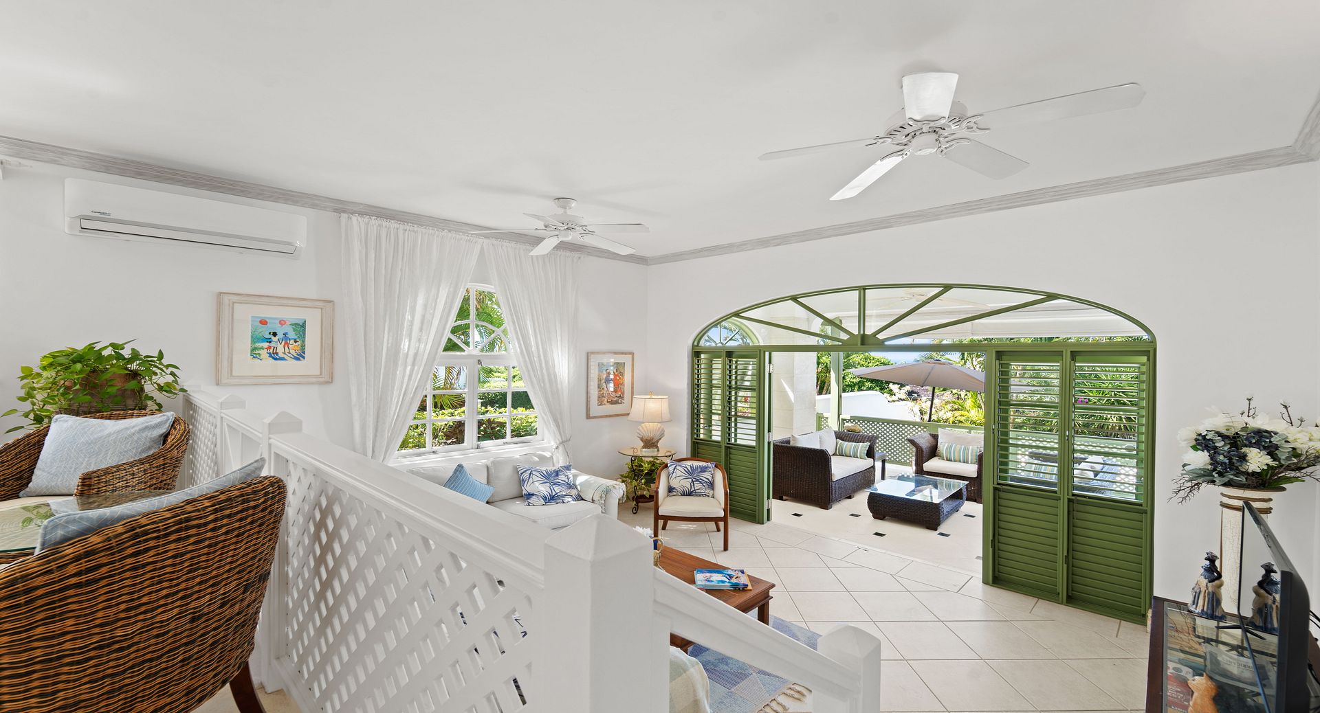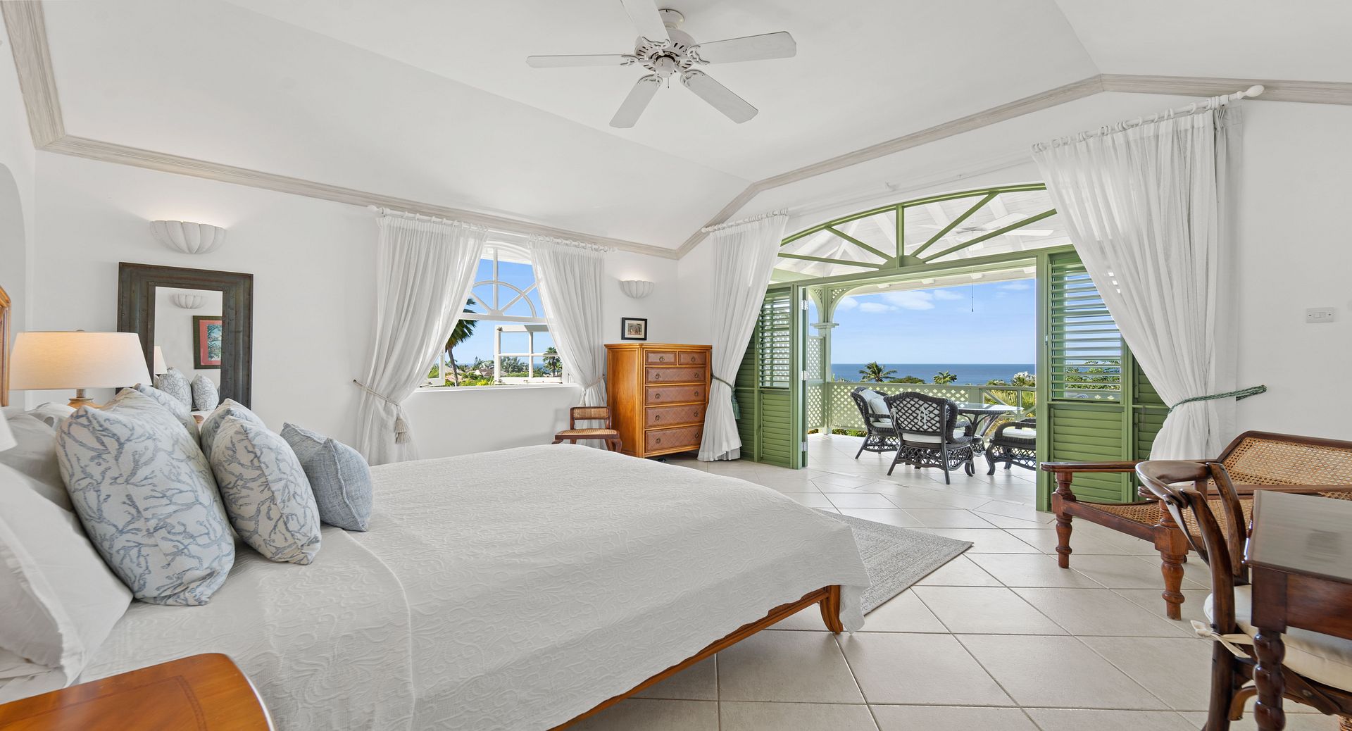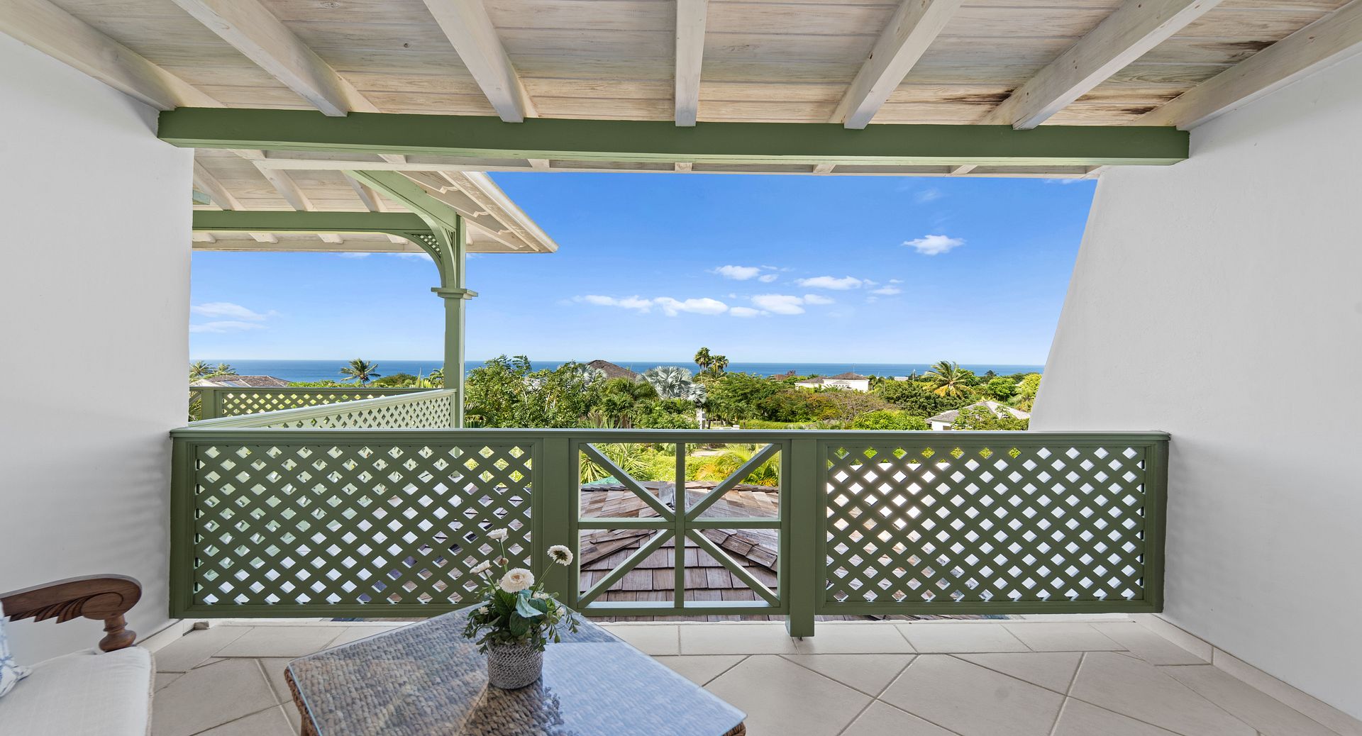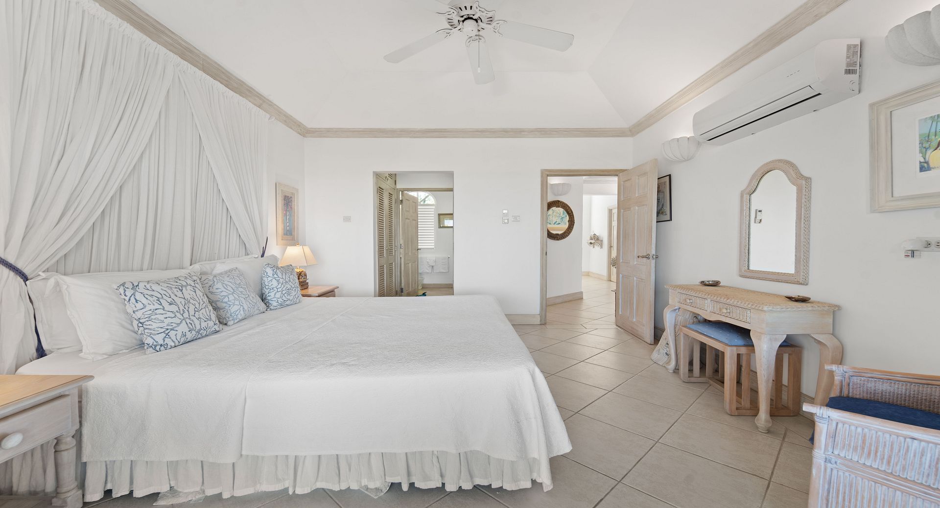 Upstairs, you’ll find two additional en-suite bedrooms, each with private terraces that provide sweeping views of the Caribbean and the perfect vantage point for watching the island’s spectacular sunsets with a glass of wine in hand. Every room is air-conditioned for comfort, yet the shutters and doors can be opened to let in the warm tropical breeze, giving you the choice between cool indoor comfort or open-air island charm. The property also includes two dedicated parking spaces for guests wishing to explore Barbados by car.