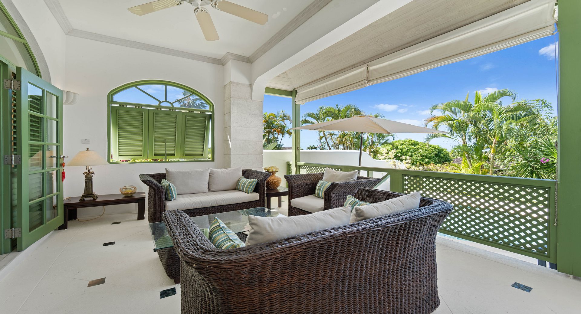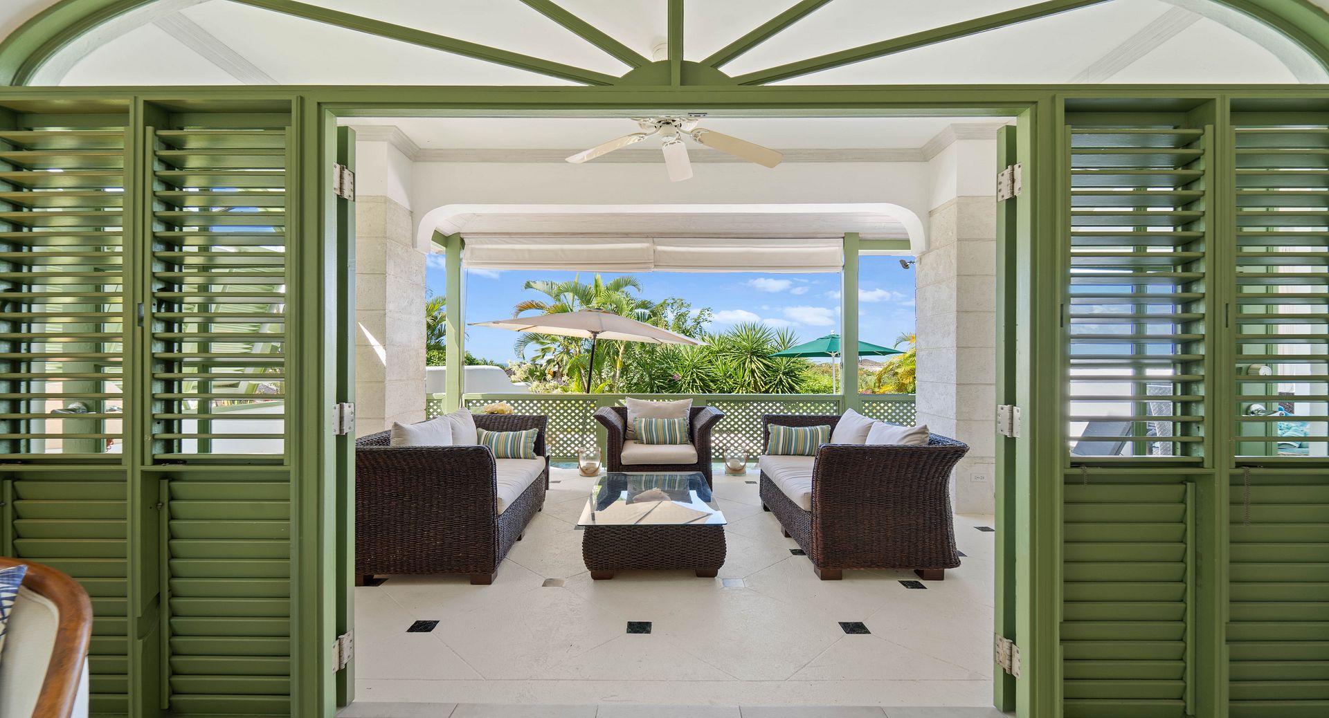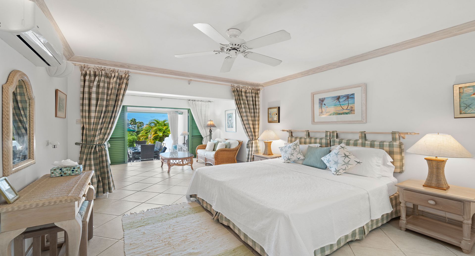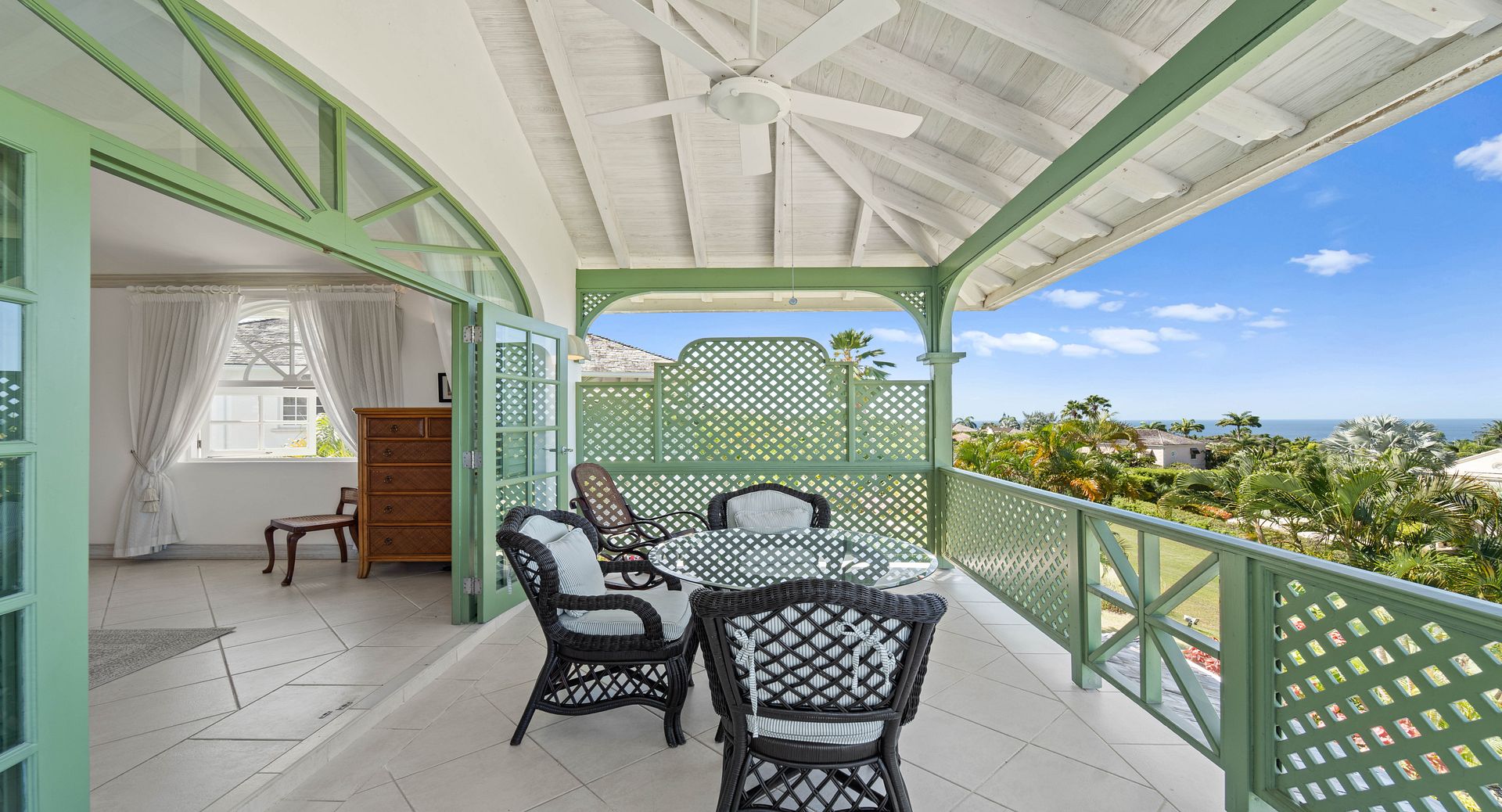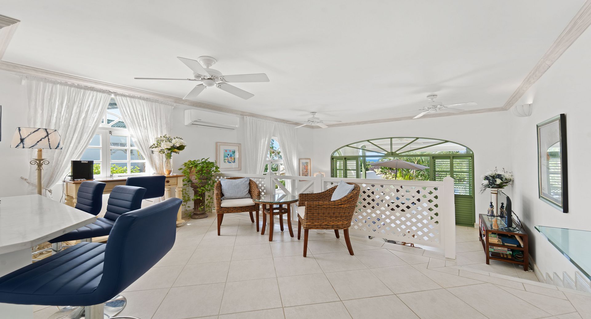 Upstairs, you’ll find two additional en-suite bedrooms, each with private terraces that provide sweeping views of the Caribbean and the perfect vantage point for watching the island’s spectacular sunsets with a glass of wine in hand. Every room is air-conditioned for comfort, yet the shutters and doors can be opened to let in the warm tropical breeze, giving you the choice between cool indoor comfort or open-air island charm. The property also includes two dedicated parking spaces for guests wishing to explore Barbados by car.