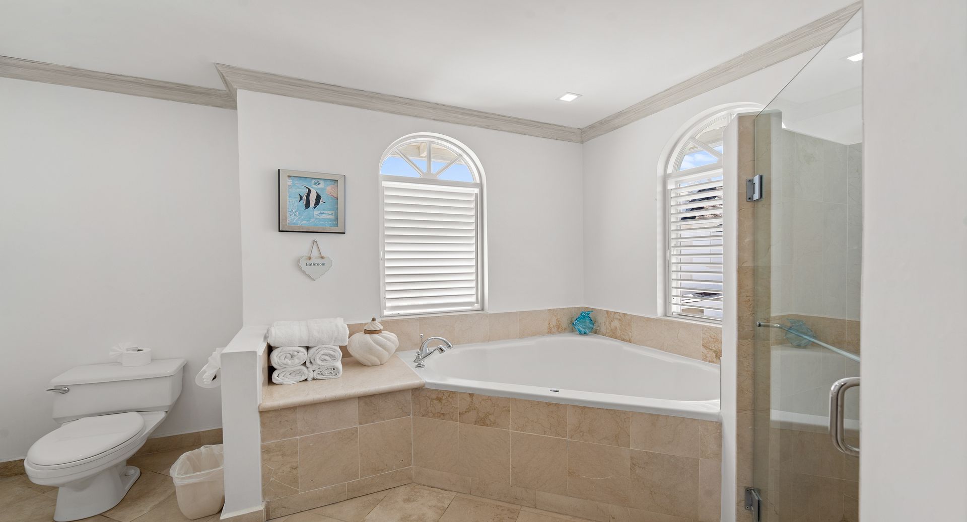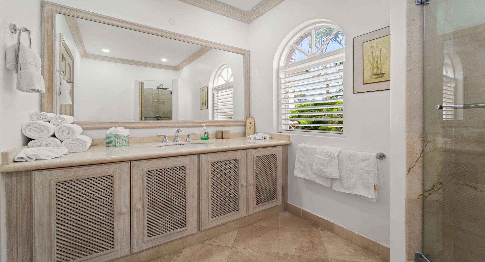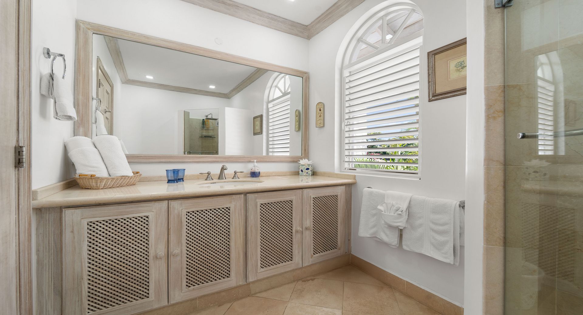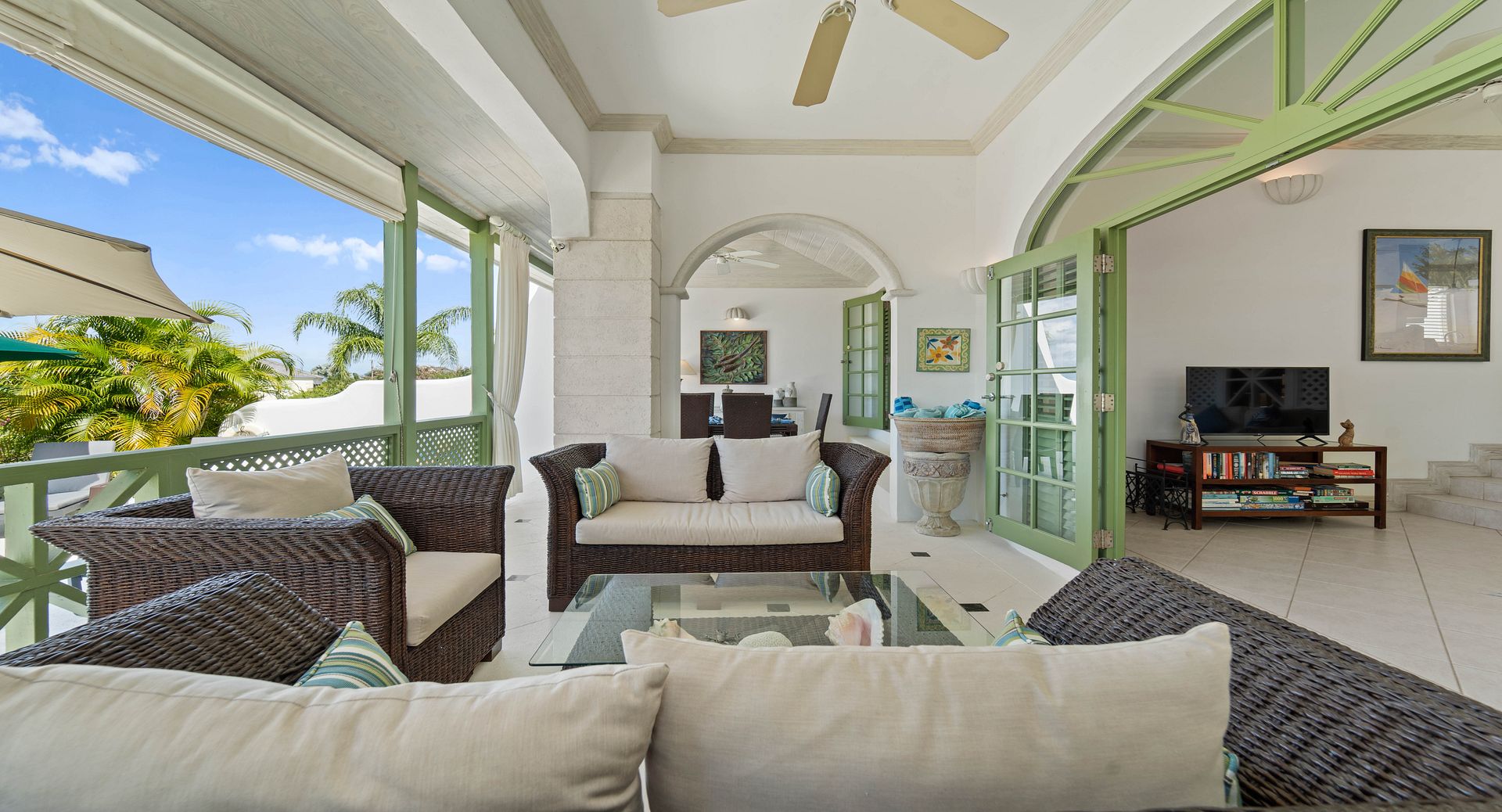Upstairs, you’ll find two additional en-suite bedrooms, each with private terraces that provide sweeping views of the Caribbean and the perfect vantage point for watching the island’s spectacular sunsets with a glass of wine in hand. Every room is air-conditioned for comfort, yet the shutters and doors can be opened to let in the warm tropical breeze, giving you the choice between cool indoor comfort or open-air island charm. The property also includes two dedicated parking spaces for guests wishing to explore Barbados by car.