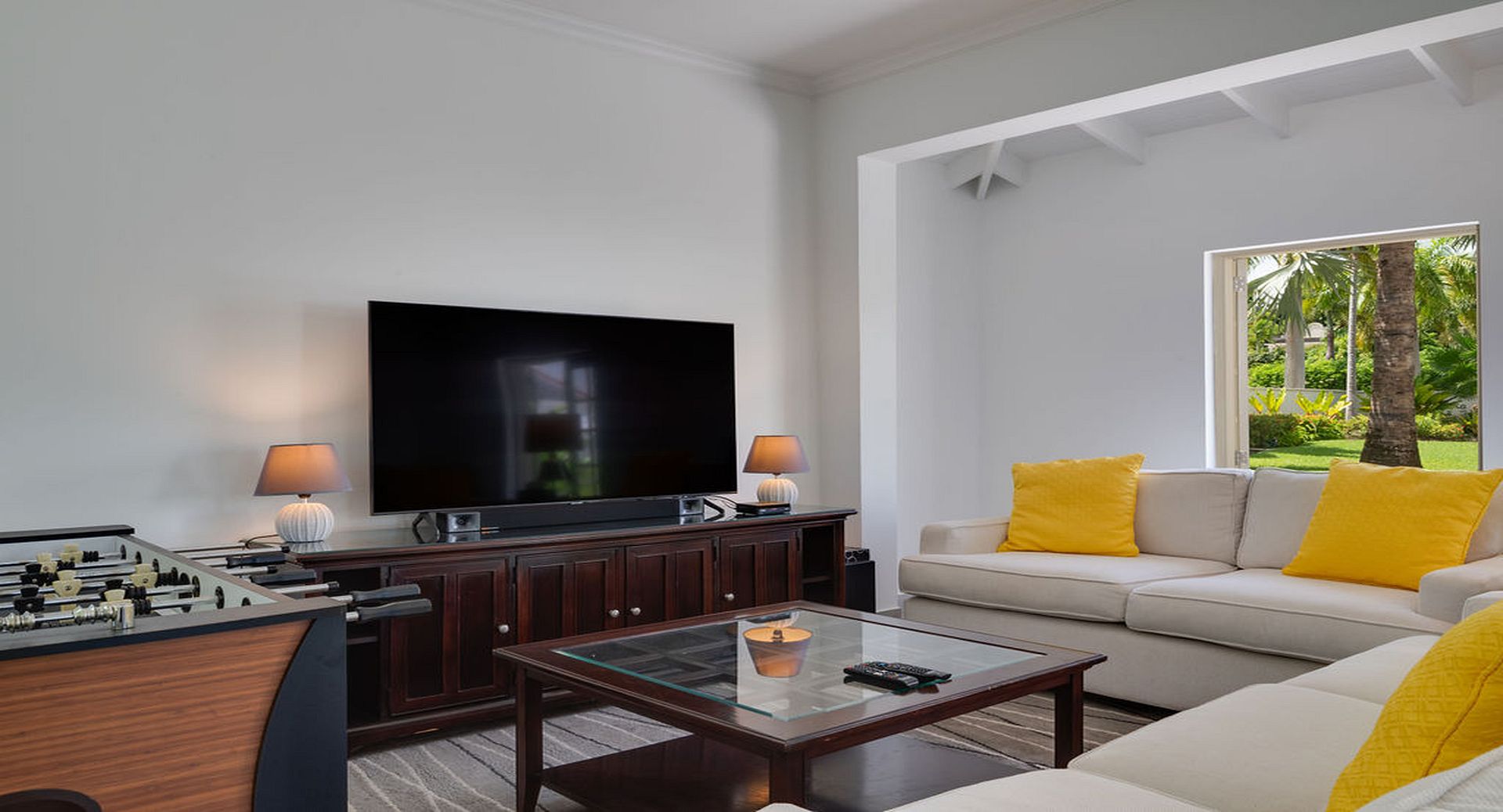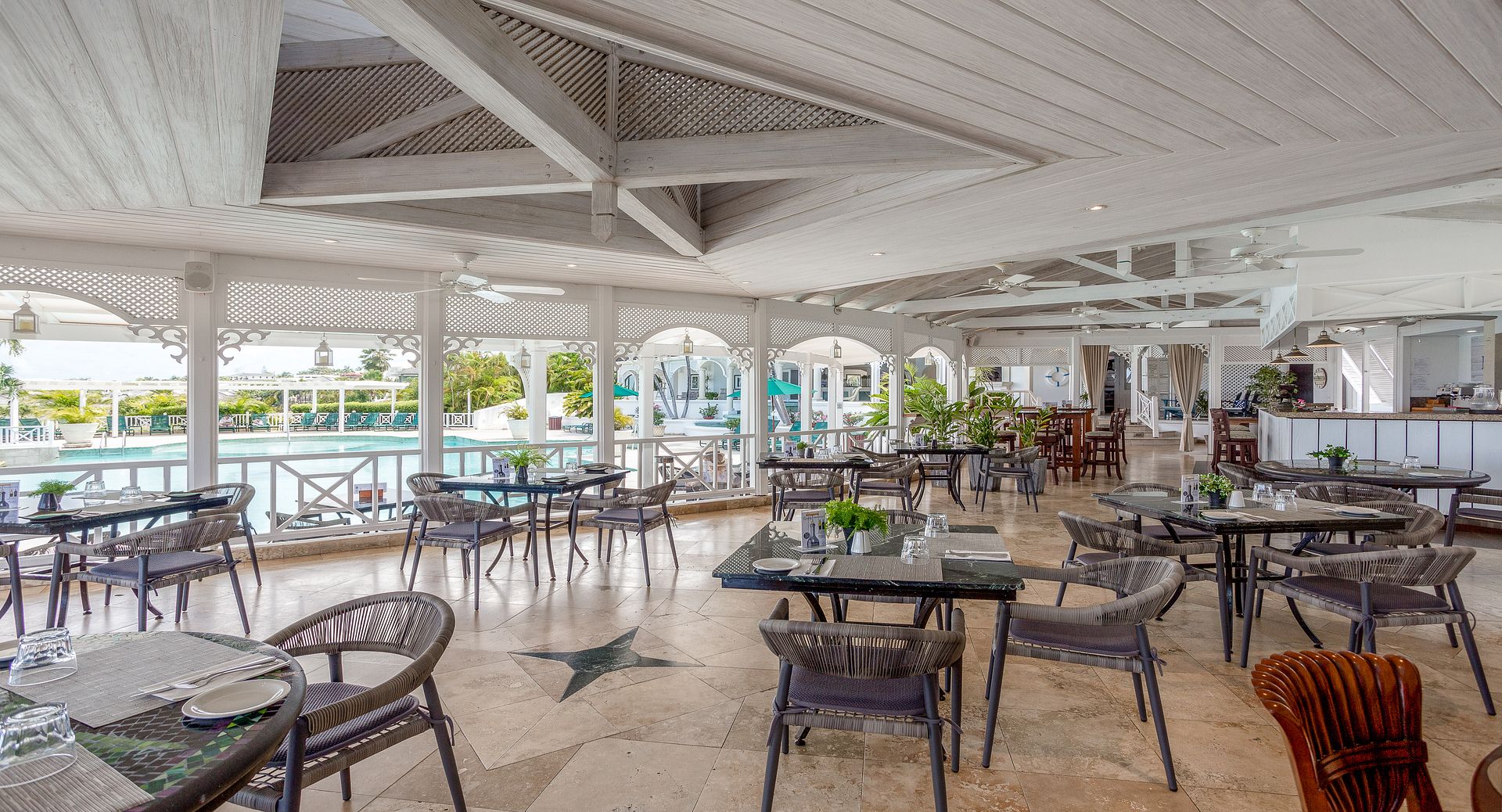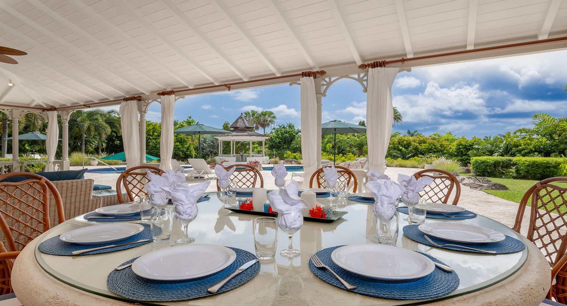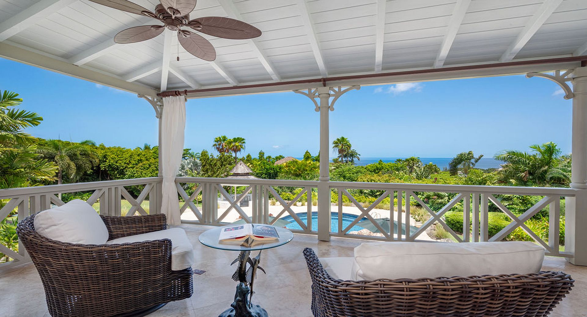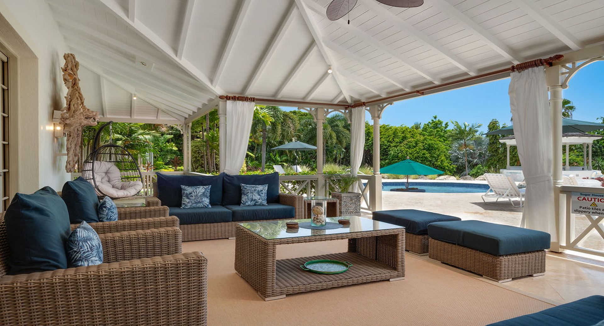 Outdoor living is a true highlight. The villa boasts a large private swimming pool, surrounded by multiple sunbathing and lounging areas, perfect for long, leisurely days under the Caribbean sun or relaxed evenings entertaining family and friends.