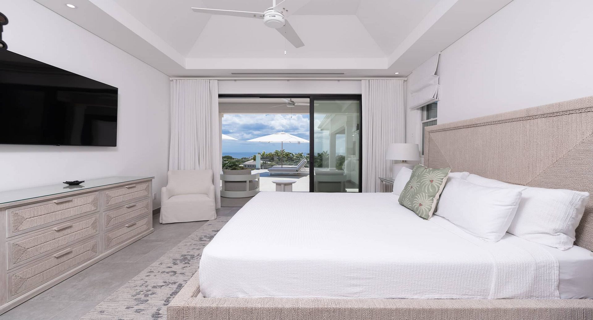 Perched in an enviable position overlooking both the Caribbean Sea and the manicured greens below, The Fairways is a contemporary five-bedroom villa designed for effortless island living. Offering five and a half bathrooms, a private cottage suite, and expansive indoor–outdoor spaces, this is the perfect retreat for families, couples, or groups seeking refined comfort and complete relaxation.