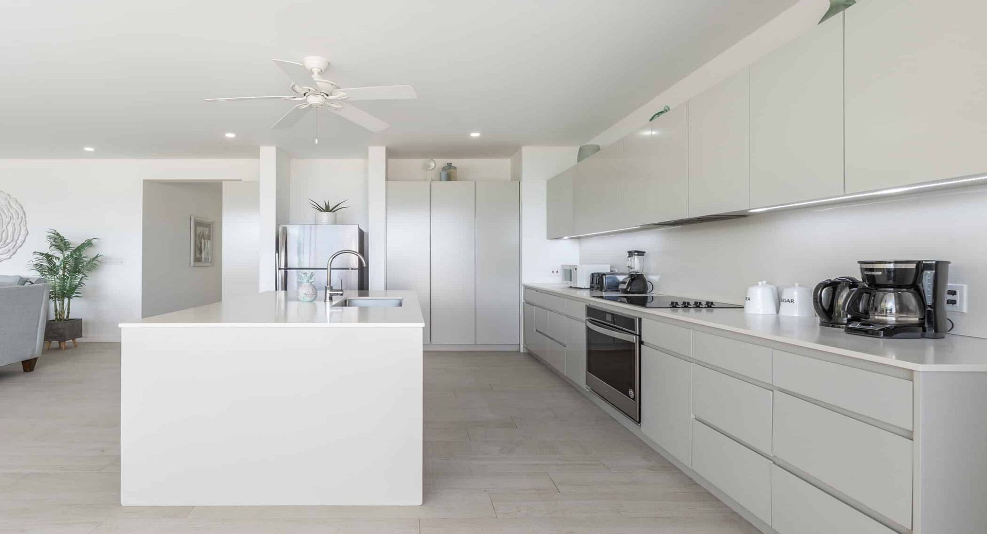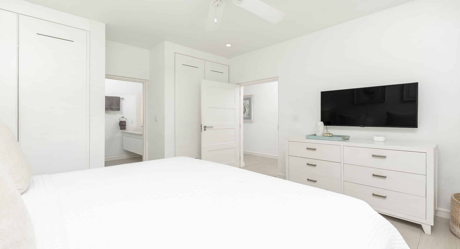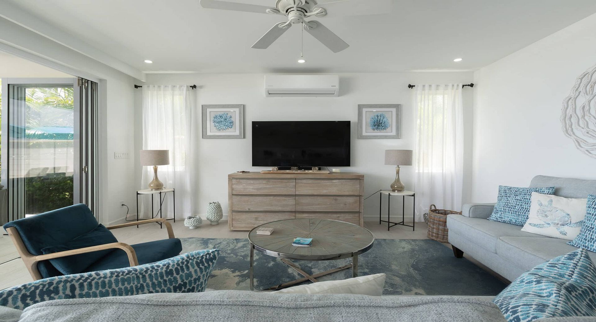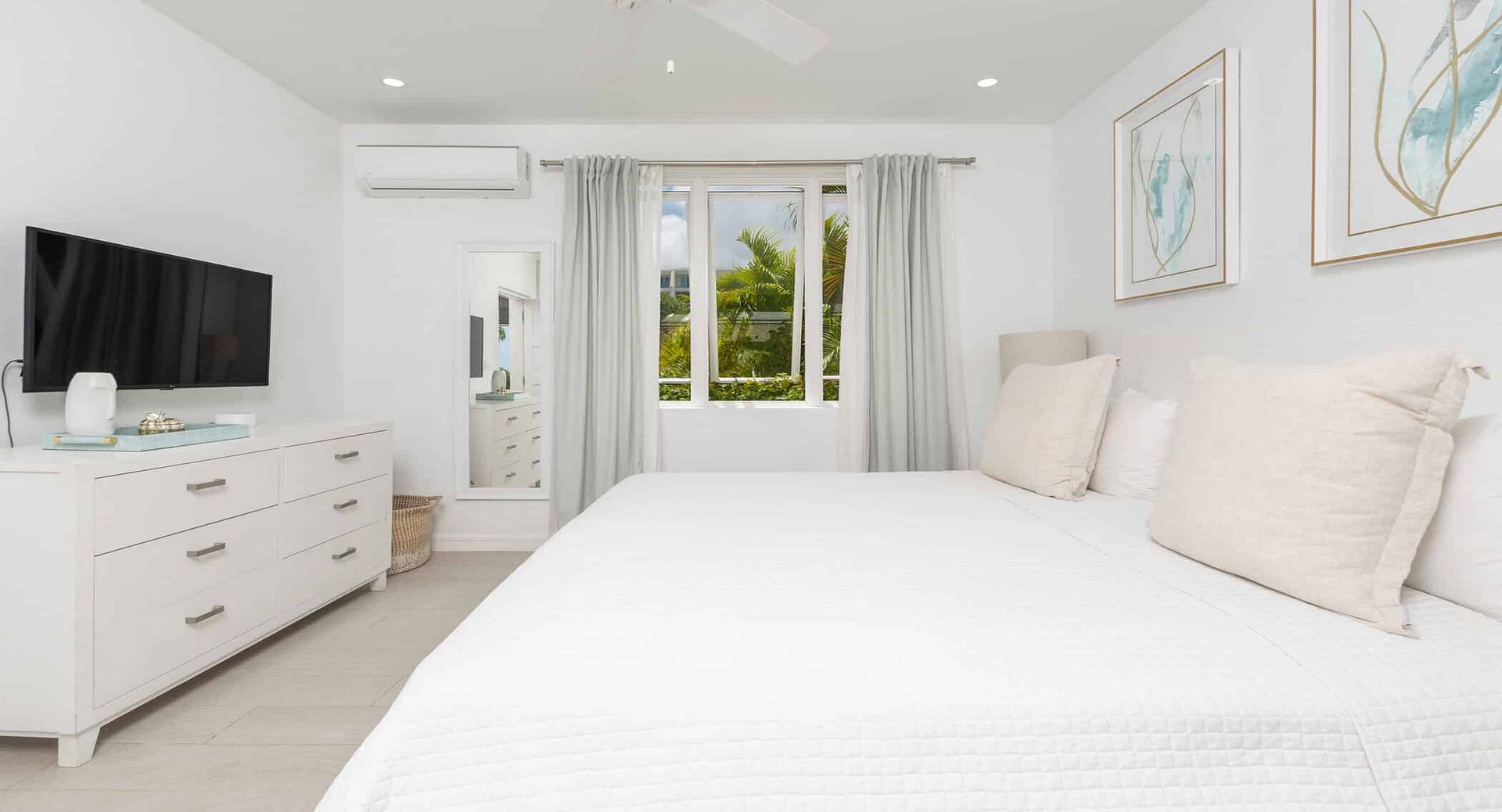 Inside, the villa exudes modern Caribbean charm with an open-plan living and dining area that flows seamlessly onto the patio. The fully equipped kitchen, complete with contemporary appliances, is perfect for preparing meals at home or hosting friends.